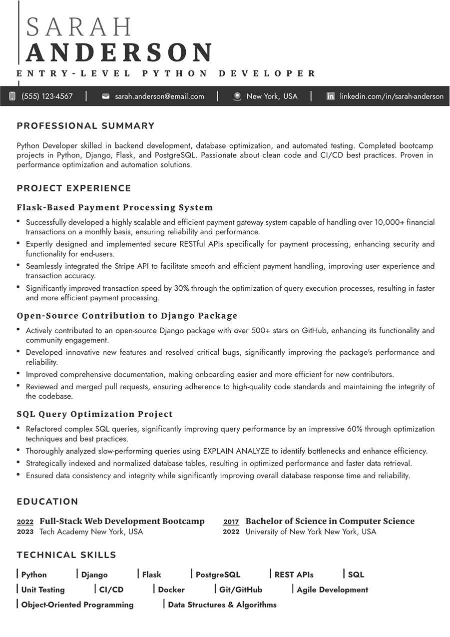 1. Entry-Level Python Developer Resume Example