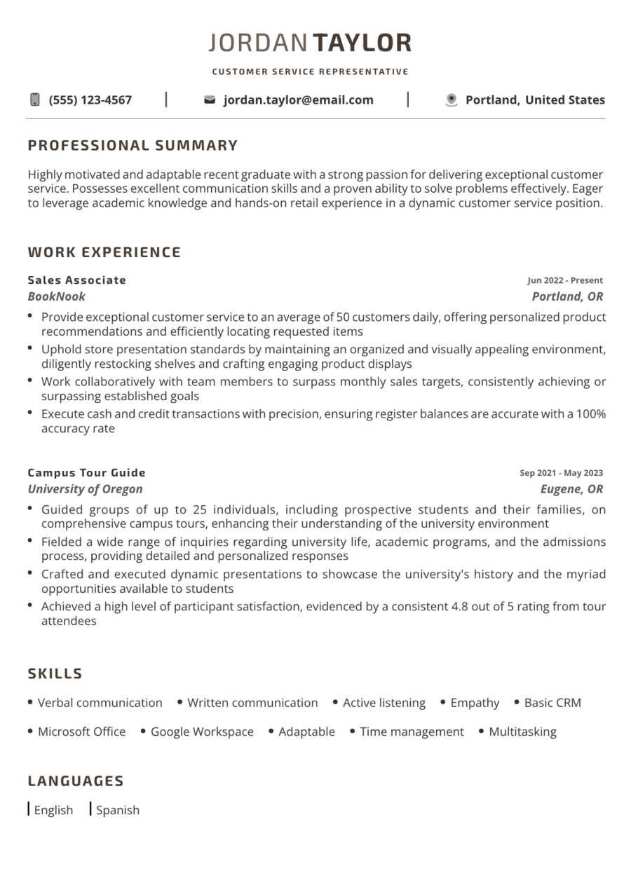 JORDAN TAYLOR CUSTOMER SERVICE REPRESENTATIVE jordan.taylor@email.com (555) 123-4567 Portland, United States