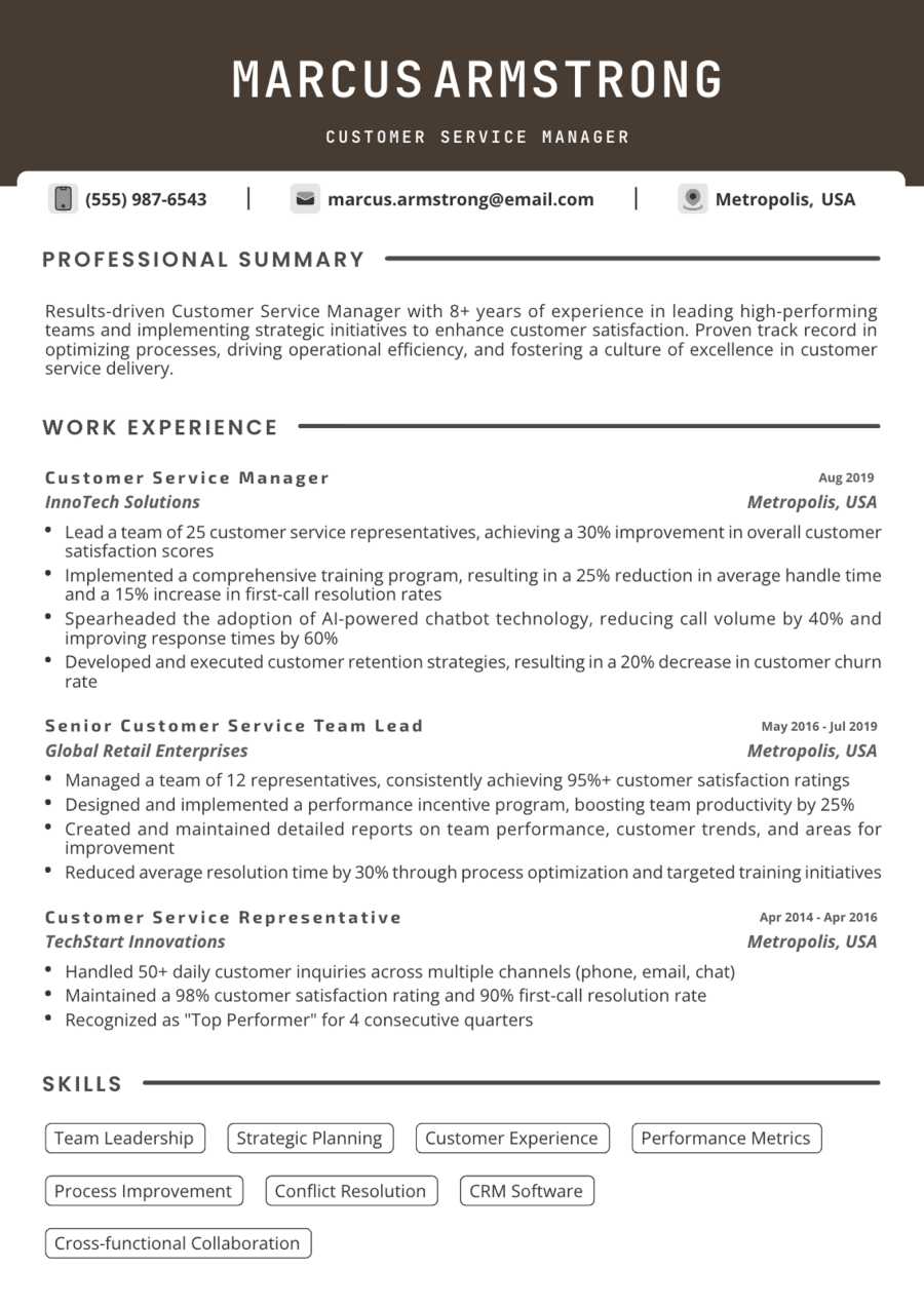 Customer Service Manager InnoTech Solutions Aug 2019 Metropolis, USA