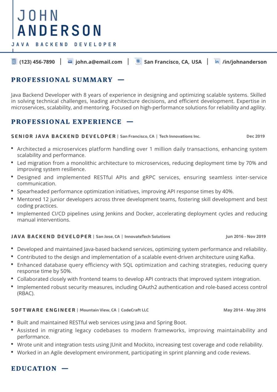 The job market for Java developers remains competitive in 2025, with employers seeking specialists across the full development stack. Whether you're writing core Java applications or building enterprise solutions with Spring Boot, your resume needs to appeal to hiring managers while passing automated screening systems.