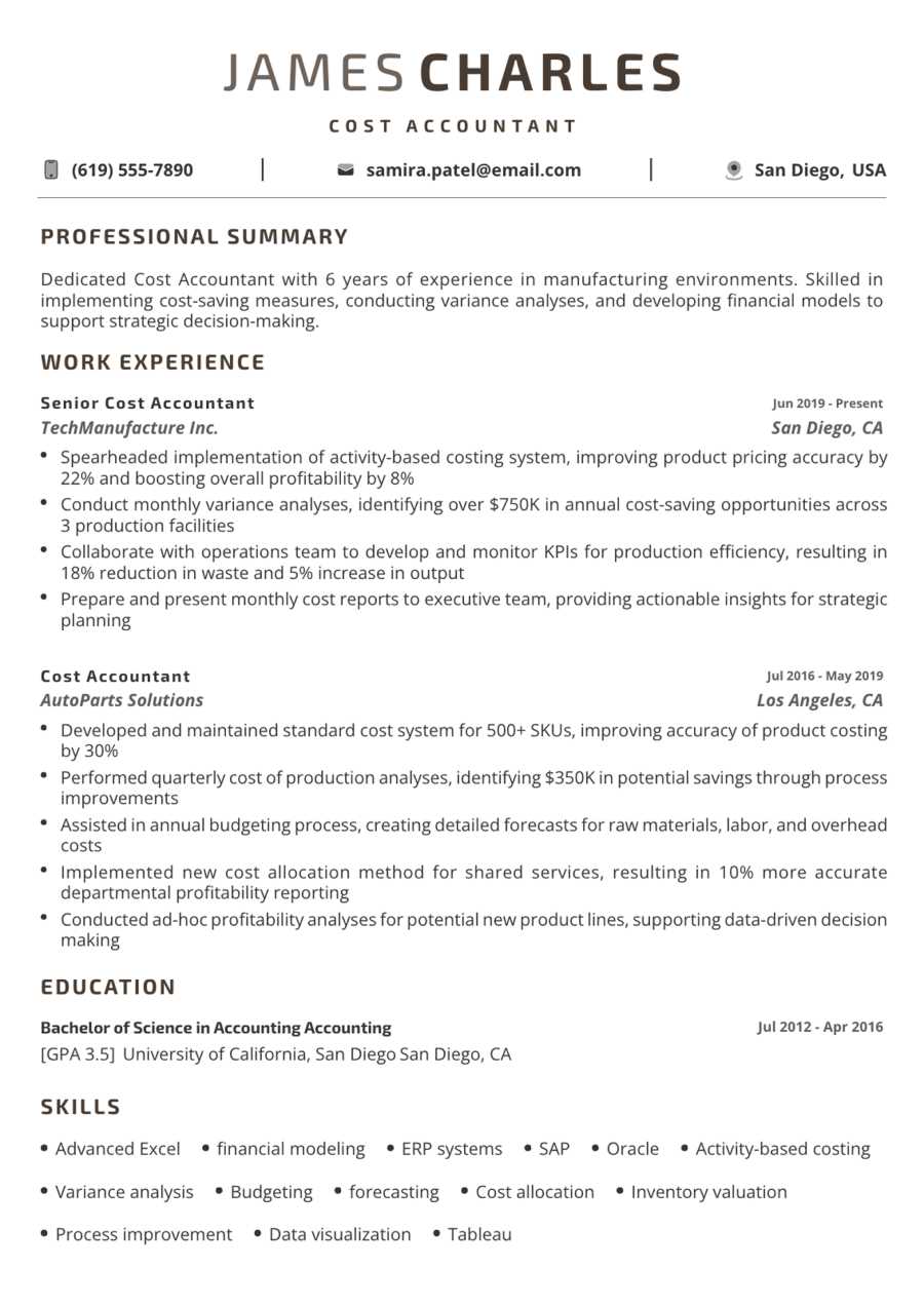 In cost accounting, it’s all about maximizing profitability and ensuring efficient resource use. If you're in this field, your resume should focus on cost savings and optimization strategies.