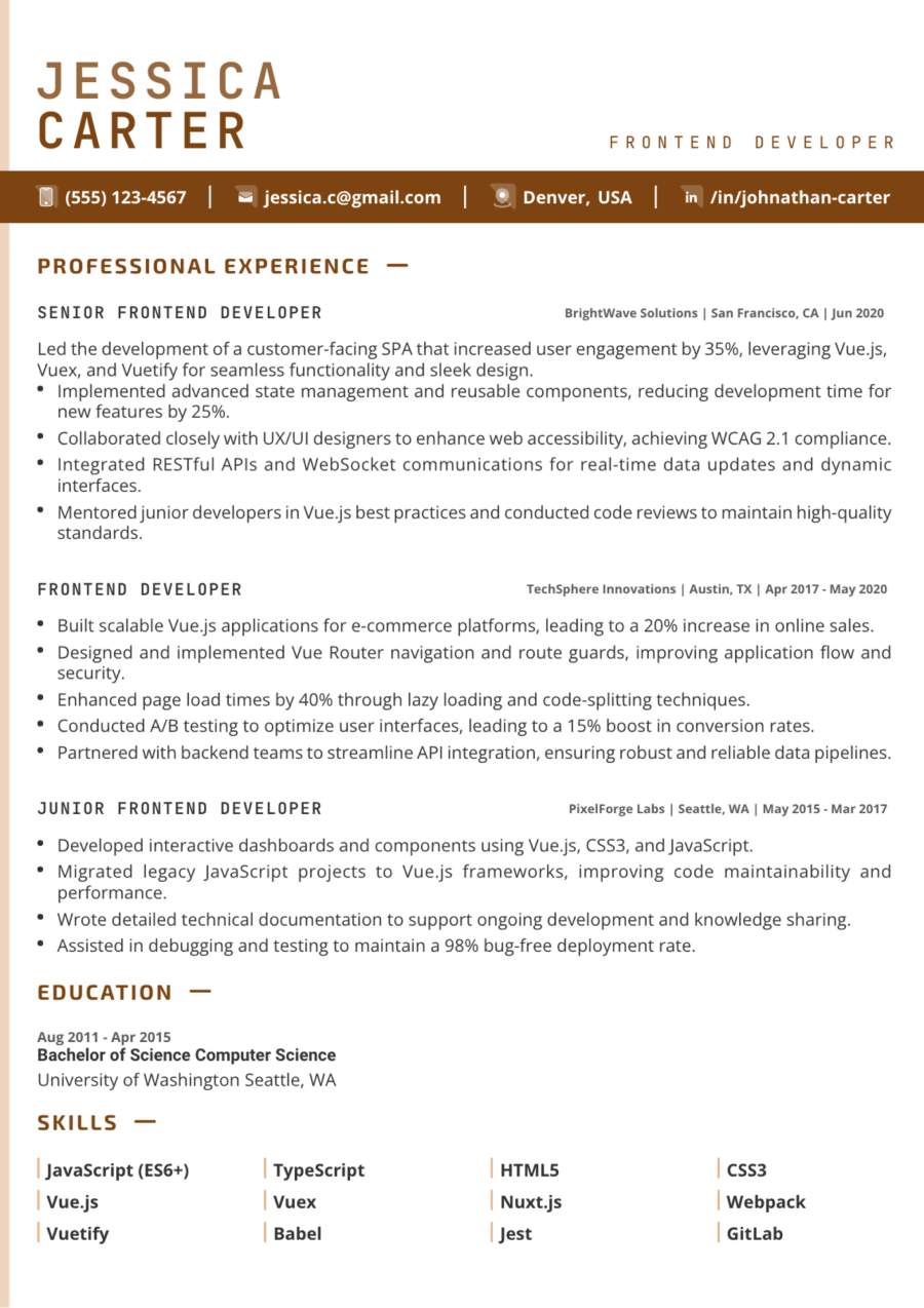 “This resume builder is incredible. The customization options allowed me to present my skills clearly and effectively. I’ve had multiple interviews already.”